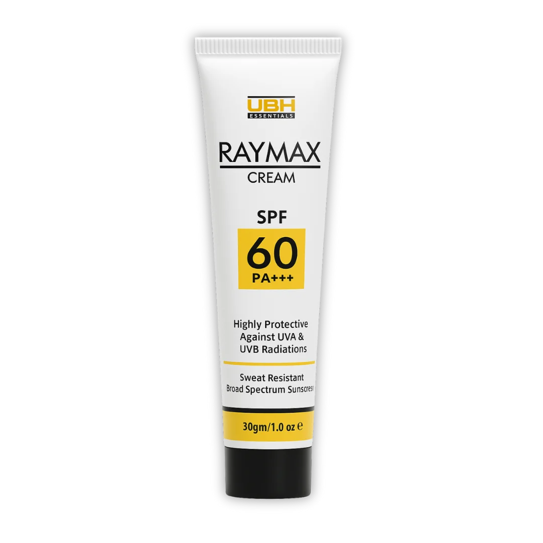 RayMax SPF60 Sunblock is a high-protection sunscreen cream designed to shield your skin from intense UV exposure. Its advanced formulation combines chemical and physical filters to safeguard against UVA and UVB rays while maintaining a lightweight, non-greasy finish. The cream delivers long-lasting protection, perfect for daily wear in harsh sunlight. With consistent use, it helps prevent sunburn, pigmentation, and signs of premature aging.